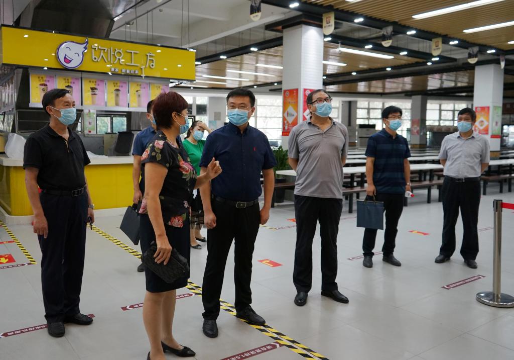 督导组一行先后到学校大门口、食堂、校医院、医学隔离观察场所、学生宿舍等地开展实地检查督导,深入了解学生报到流程、校园环境、卫生防疫消毒、人员值班值守、应急隔离、食堂和宿舍管理等方面疫情防控工作的开展情况,通过查阅资料了解学校在疫情防控方面的具体做法和准备情况。实地查看中,张伟向督察组介绍了学校关于学校主体责任落实、疫情防控措施、秋季学期开学准备、师生员工信息排查、建立联防联控机制、宣传教育等方面的情况。