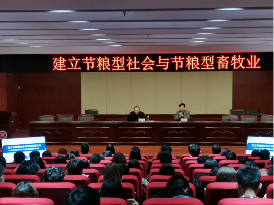 张卫宪从为什么要构建节粮型社会和节粮型畜牧业、建立节粮型社会与节粮型畜牧业的方法与措施、新时代大学生的职责三个方面展开授课。他充分分析了国内外形势与我国粮食和畜牧业发展面临的问题,指出建设节粮型社会和节粮型畜牧业是每个人的责任与义务。张卫宪耐心阐述了中华民族厉行勤俭节约的优良传统和中国共产党艰苦奋斗的优良作风,从专业角度提出要加快发展现代农作物,从源头上保障粮食安全。他强调,新时代学生要珍惜劳动成果,牢记青年使命,刻苦学习,武装自己,学以致用,造福社会。