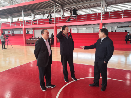 开幕式前,罗士喜与万旭、张二周进行磋商交流。张二周详细讲解了篮球训练基地的各种建筑设施功能和作用,介绍了耗资2000多万元改造、建设篮球训练基地情况。万旭对我校为河南省体育事业发展、健康中原建设、篮球运动提升所做出的支持与奉献表示感谢。