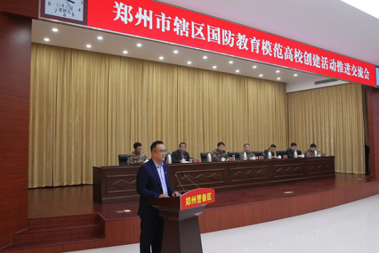 11月13日下午,郑州警备区召开郑州市辖区国防教育模范高校创建活动推进交流会,我校作为郑州市金水区辖区国防教育工作突出高校代表参加交流会。河南省军区、省教育厅、郑州警备区、郑州市市委宣传部、教育局有关领导以及郑州市辖区65所高校国防教育负责人参加会议。