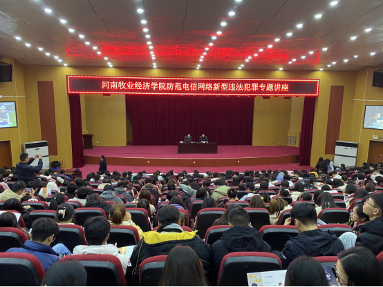 11月19日、20日、26日,学校邀请郑东新区分局反诈中心副主任赵冬雪、北林路派出所民警马杰、迎宾路派出所民警郝一凡分别在龙子湖校区、北林校区、英才校区举办了三场防范电信网络新型违法犯罪主题的讲座,讲座通过播放防电信诈骗视频、介绍各类电信诈骗的具体形式、列举实际案例、现场解答学生疑问等形式,让学生全方位了解何为电信网络诈骗,从而有效避免掉入电信网络诈骗陷阱,以提高我校学生防诈骗意识,提升防骗能力,尽最大可能减少师生财产损失。