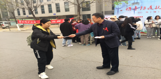 11月30日、12月1日分别在英才校区、龙子湖校区、北林校区组织开展了签名仪式、发放健康教育材料、有奖答题、现场咨询、现场检测等户外宣传活动,发放宣传材料、健康教育处方3000余份、现场咨询1000余人次、有奖答题300余人次。校党委书记穆瑞杰、副书记李波、副校长张卫宪,宣传部、学工部、校团委、学院负责人分别参加各校区户外宣传活动,副校长张卫宪为获奖者颁发了证书。参加活动的领导不畏严寒、冒着雨雪与学生面对面交流,发放宣传教育材料、带领学生签名铭志:“携手防疫抗艾 共担健康责任”。活动由校医院主办,惠济区疾控中心、宣传部、学工部、校团委、各学院、校健康协会共同参与。