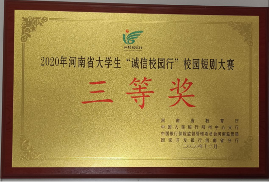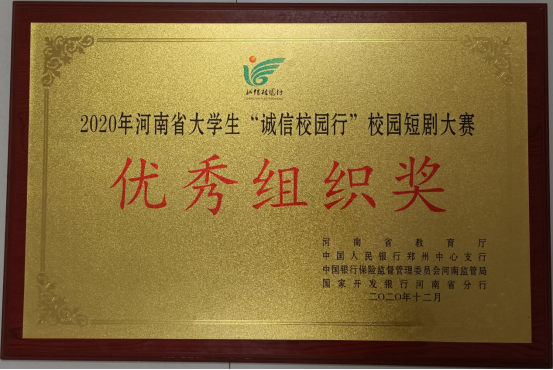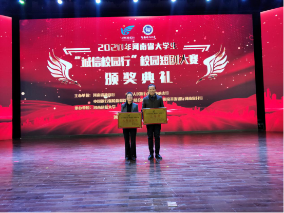 12月16日,由河南省教育厅、中国人民银行郑州中心支行、中国银行保险监督管理委员会河南监管局、国家开发银行河南省分行联合举办的2020年河南省大学生“诚信校园行”校园短剧大赛在河南科技大学圆满落幕。我校选送的资助校园短剧《好人在路上》荣获三等奖,学校荣获优秀组织奖。