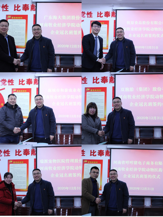 动物医药学院院长宋予震向15家企业介绍了动物医药学院的历史发展情况以及所取得的成果,与企业逐一签订了2020级冠名班合作协议。