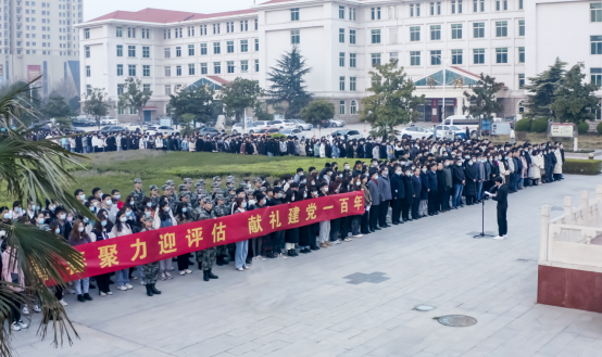 全体师生共同唱响《歌唱祖国》,伴着嘹亮的歌声,师生代表在“青春聚力迎评估 献礼建党一百年”条幅上签名。
