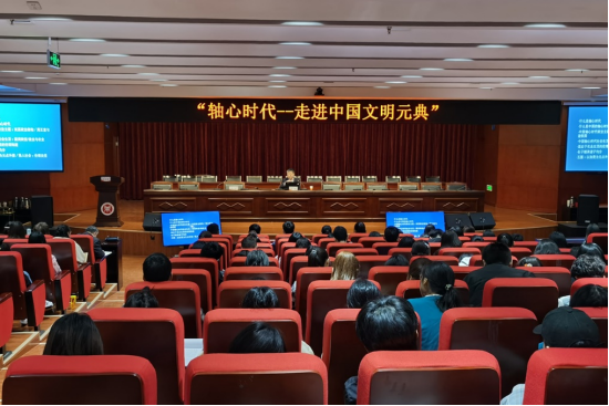 马勇以《轴心时代——走进中国文明元典》为题,从什么是轴心时代、什么是中国的轴心时代、中国轴心时代政治主题、中国轴心时代社会生活、适应于农业生活的伦理构建等方面对中国文明元典进行了详实阐述,引领学生一起走进中国文明元典。