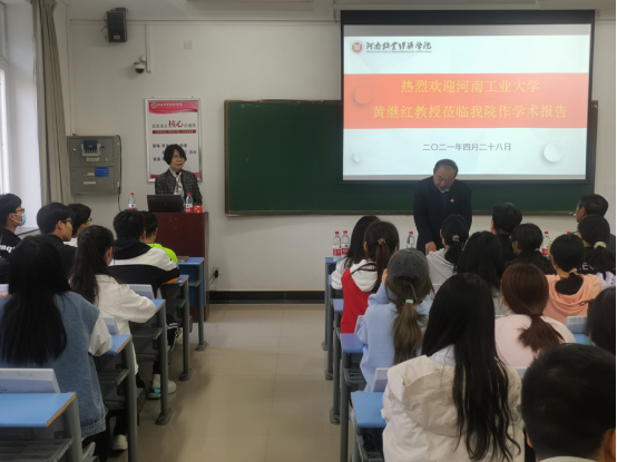 4月28日下午,我校食品与生物工程学院Food-Bio Seminar第二期——大咖讲坛系列活动第七场在龙子湖校区2号教学楼A-402教室举行。食品与生物工程学院特邀河南工业大学博士生导师、中原学者黄继红教授作《小麦粮头食尾全生命周期高值化利用》专题报告。副校长张卫宪出席报告会,食品与生物工程学院相关负责人,各科研团队成员和学生代表聆听报告。报告会由张卫宪主持。