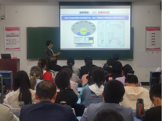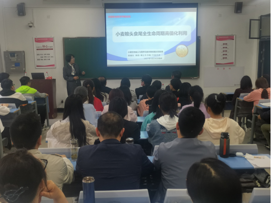 黄继红教授深情回顾了自己与小麦结缘,回到河南走上小麦深加工科研道路的心路历程,从家国情怀和国家战略的角度讲述了国内外小麦加工领域水平和趋势,介绍了河南省的有关产业技术政策。黄继红教授从麦胚蛋白组学解剖进展、研究进展以及相关产业化应用等方面,详细介绍了小麦生物转化高值化利用关键技术和麦胚功能蛋白开发利用现状。黄继红教授展示了她所带领的科研团队在小麦生物转化、麦胚功能蛋白研究开发领域取得卓越成果,展望了麦胚功能蛋白产业化的美好前景,强调了治未病健康工程是一项具有历史和现实意义的创新性工作。“药食同源”“妆食同源”理念激起了与会师生的强烈共鸣。