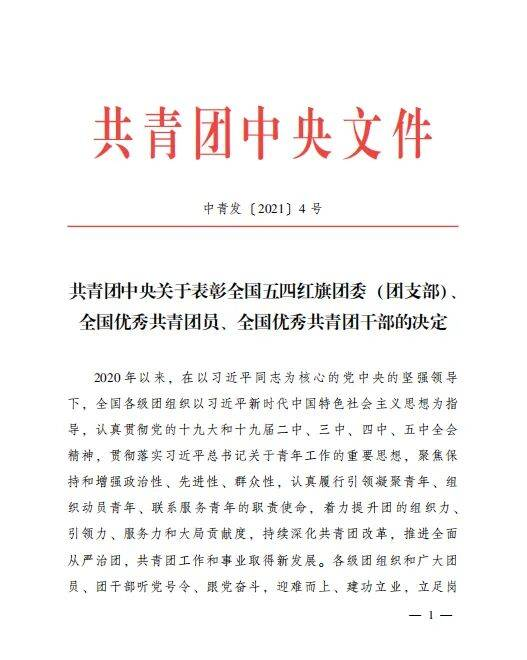 近日,共青团中央公布了《关于表彰全国五四红旗团委(团支部)、全国优秀共青团员、全国优秀共青团干部的决定》(中青发〔2021〕4号),我校金融与会计学院被授予“全国五四红旗团总支”荣誉称号,这是我校首次获得全国先进团组织荣誉。