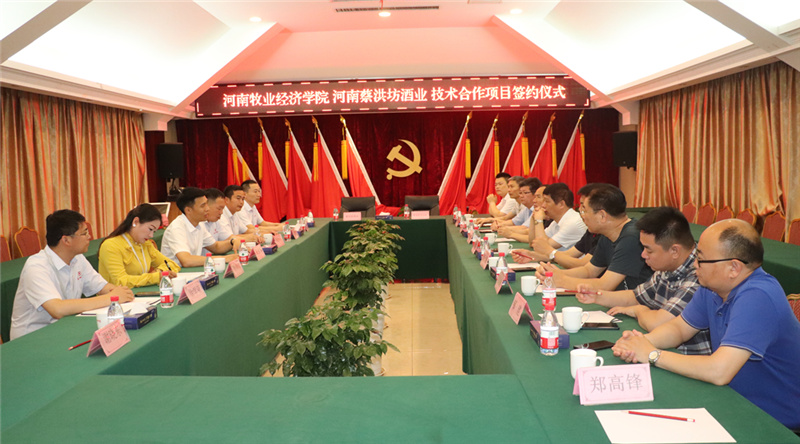 6月3日,我校与河南蔡洪坊酒业有限公司在蔡洪坊公司三楼会议室举行校企合作签约仪式。我校副校长杨宝进,蔡洪坊酒业有限公司总经理王永华、总工程师刘洪亮出席签约仪式,我校党委组织部、党委宣传部、社会服务办公室、继续教育学院、食品与生物工程学院(酒业学院)等相关负责人参加签约仪式。