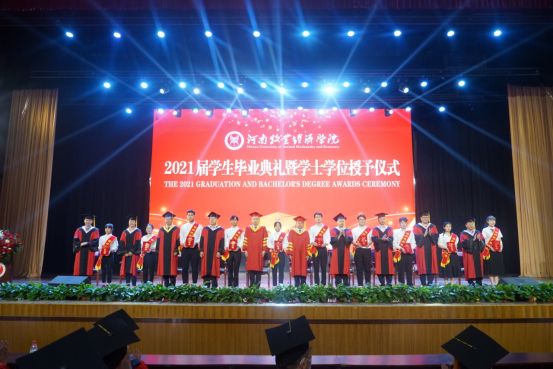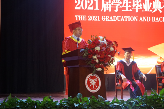 毕业典礼上,校党委副书记李俊杰宣读了《关于表彰2021届省级优秀毕业生的决定》,副校长吴中宣读了《关于授予张宾宾等4556名2021届本科毕业生学士学位的决定》。