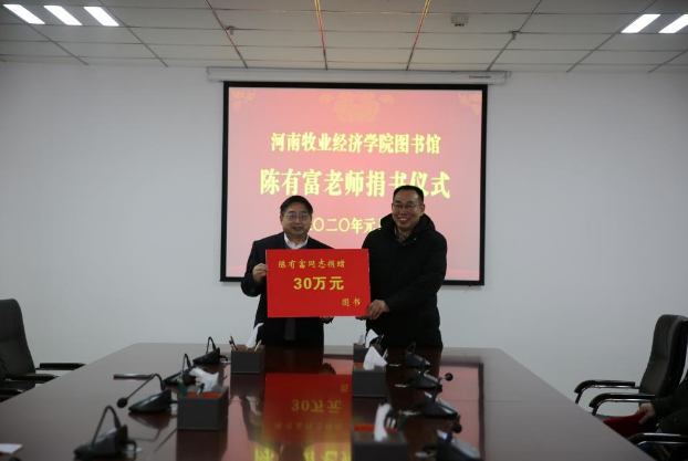 提高人才培养质量是学校每位教师的初衷,图书馆陈有富老师更是挂在心上,如何为提高人才培养质量多做贡献是他心里时时惦记的事,当陈有富得知学校图书馆需要增购大量书籍而经费紧张时,便回家与爱人商量,拿出30万元积蓄为学校捐书。当大家赞扬他时,他却说:“我是一位有30多年党龄的老党员,又是留校生,受党和学校教育培养近40年,学校的需要就是党的召唤,在学校建设遇到困难时,我应该第一个站出来,为学校发展做贡献。”陈有富平时生活节俭,但是为了给师生送上精神食粮,却出手大方,毫不吝啬。