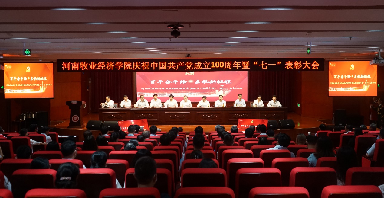6月29日上午,我校在龙子湖校区图书馆一楼报告厅召开庆祝建党100周年暨“七一”表彰大会,回顾党走过的百年光辉历程,赞颂党的丰功伟绩,展现新时代高校师生党员的精神风貌,进行新党员入党宣誓和党员重温入党誓词活动,为光荣在党50年的老党员颁发纪念章,表彰奖励为学校事业发展作出突出贡献的优秀共产党员、优秀党务工作者和先进党组织,为学校党建工作“双创”培育创建单位颁发奖牌,激发广大党员师生积极投身建设高水平应用型大学的热情。校领导穆瑞杰、罗士喜、李俊杰、李波、吴中、李中华、张伟、杨志清、杨宝进、姚毅、曹天杰出席会议,各基层党委、党总支,直属党支部书记,50年以上党龄老党员代表,受表彰的先进单位和个人,党建工作标杆院系和样板支部首批验收通过和第二批立项建设单位代表,2021年新发展教工党员等200余人参加会议。会议由校党委副书记、校长罗士喜主持。