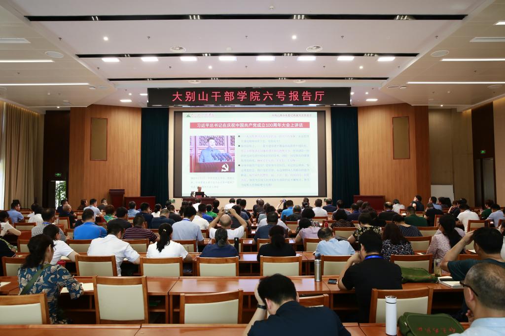 培训期间,大别山干部学院副院长孙伟作了题为《大别山精神及其时代价值》的专题报告,从大别山辉煌革命史铸就了大别山精神、大别山精神主要内涵、让大别山精神绽放出新时代光芒等三个角度讲述了大别山精神及其时代价值。