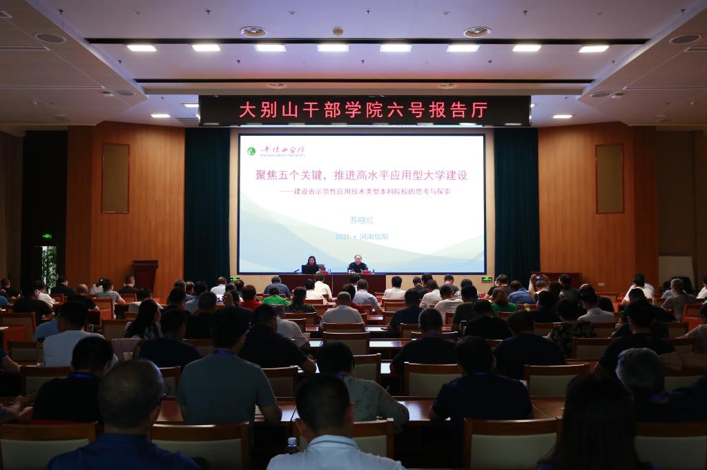 平顶山学院校长苏晓红教授以《聚焦五个关键,推进高水平应用型大学建设——建设示范性应用技术类型本科院校的思考与探索》为题,作专题报告,重点讲解了如何做好聚焦应用型办学定位、坚定不移推进学校转型发展;聚焦区域产业发展需求、打造特色优势学科专业群;聚焦应用型人才培养、推进“产教融合”育人模式创新;聚焦服务地方、大力推进应用研究与创新;聚焦治理能力提升、推进治理体系改革完善等重点工作。