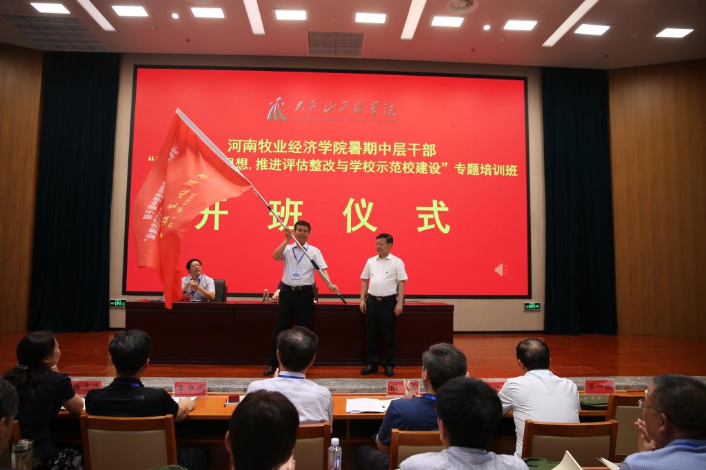 随后,副校长吴中带领全体学员集体学习了我校《本科教学工作合格评估整改方案》和《示范性应用技术类型本科高校建设方案》,指明了下一阶段评估整改和示范校建设努力方向。副校长杨宝进介绍了我校与武陟县开展校地合作取得的显著成效和未来工作思路。