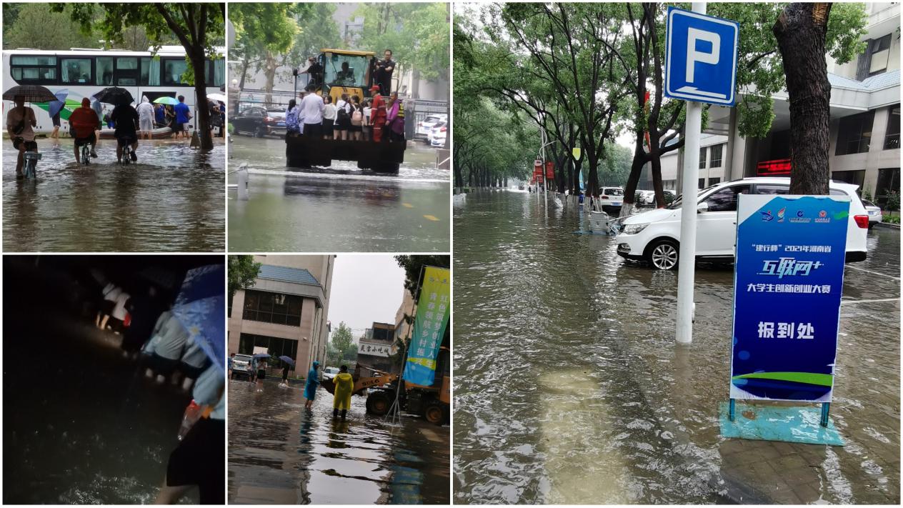 7月23日上午,雨过天晴,大赛胜利结束,我校师生顺利完成比赛。但因新乡市灾情严重,比赛所在地牧野区更为重灾区,经请示部门领导,为学生安全考虑决定原地待命一天。