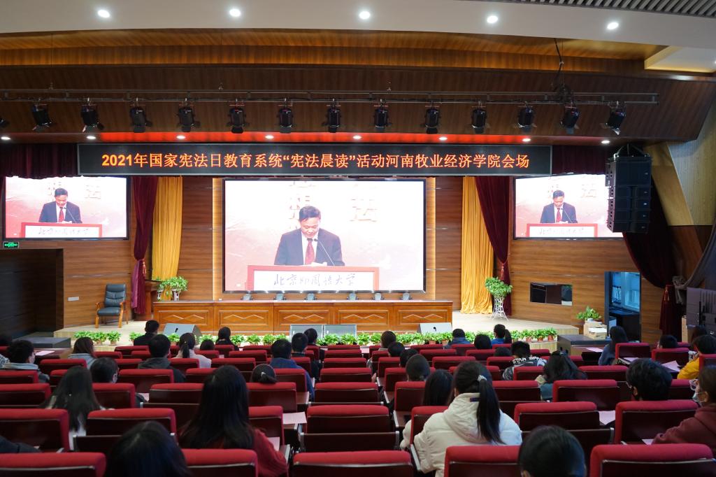 12月3日上午,我校师生在龙子湖校区1号教学楼合100报告厅tyc8722太阳集团城会场,以线上学习的方式参加了教育部统一部署开展的2021年国家宪法日教育系统“宪法晨读”活动。校党委副书记李俊杰,校党委委员、宣传部长王凌彬,宣传部、校团委工作人员及师生代表参加活动。