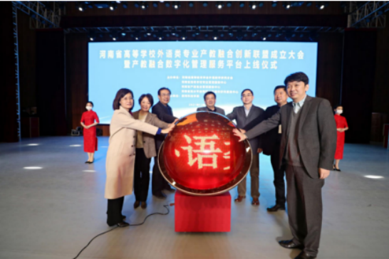 河南省高校外语类专业产教融合创新联盟成立大会由河南省高教学会外语教学研究分会、河南省高校专业管理服务中心、河南省产教融合服务管理中心、河南省高水平应用型本科高校研究服务中心联合主办,黄河科技学院承办。(外国语学院供稿)