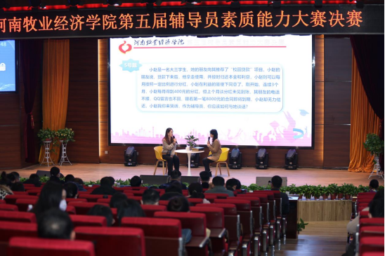 铸魂育人守初心,立德树人担使命。12月9日下午,学校第五届辅导员素质能力大赛决赛在龙子湖校区尚严楼A-100报告厅成功举办。校党委副书记李俊杰、副校长杨志清出席并观看比赛;河南农业大学党委学工部部长徐峰,华北水利水电大学党委学工部部长曹震,郑州轻工业大学党委学工部部长张世涛,第八届全省高校辅导员素质能力大赛特等奖获得者、郑州航空工业管理学院张心怡,我校党委组织部部长王清龙、马克思主义学院院长白翔、党委学工部部长郝景昊担任评委;学生工作相关职能部门负责人、各学院(书院)党委书记、副书记、团委书记(学工办主任)、团委副书记(学工办副主任)及全体辅导员观看了比赛。