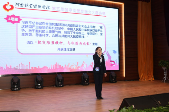 经过前期的初赛和复赛,共有14位选手进入决赛。决赛包含谈心谈话和理论宣讲两个环节。谈心谈话环节以情景再现的形式展现师生谈话的场景和过程,对于“谈话对象”所提出的种种困惑和问题,辅导员们结合自身工作经验,准确把握问题关键,与学生进行有效沟通和教育引导,充分体现出辅导员们扎实的基本功和深深的爱生情;理论宣讲环节主要考察辅导员对马克思主义理论、习近平新时代中国特色社会主义思想、党的十九届六中全会精神等的学习宣传阐释能力,参赛选手结合日常学生工作,展示了良好的理论功底、扎实的实践工作能力和昂扬的精神面貌。