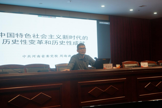学校邀请著名高等教育专家、厦门大学原副校长、中国高等教育学会学术委员会副主任、教育部学科发展与专业设置委员会副主任邬大光,厦门大学教授、教育部文化素质教育教指委委员赵婷婷,中共河南省委党校科技创新教研部副主任、副教授周海涛,中共河南省委党校科学社会主义教研部副主任、副教授李涛,我校教务处处长边传周,分别以《高质量发展与大学回归》《理解教学:教师教学能力的核心》《中国特色社会主义新时代的历史性变革和历史性成就》《新起点新理念 新使命 开启学校新征程》等为题,为参训人员作报告。