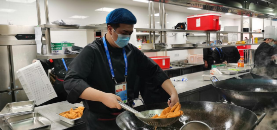 为保证技术官员和志愿者每天吃到可口的美味,糖醋里脊、红烧肉、鸡里蹦、炸鱼排、蚝油扒菜胆、五彩素绘......一道道美食每天轮番登场,这些美食的背后离不开我校烹饪工艺与营养专业学生的辛苦付出。他们每天迎着晨曦出发,在后厨进行着紧张而有序的工作,披星戴月而归结束一天的奋战,为保证每天的花样美食付出着艰辛的劳动。