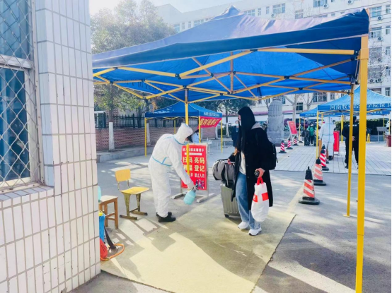 学校在学生返校前通过制定防控工作方案、召开专项工作会议、开展应急演练、精准掌握学生返校前14天行程及健康情况等科学的准备工作,保证顺利开学。返校当天,学生在逐一完成健康码、行程码、身份码、48小时核酸检测阴性证明核验,以及测温、消杀并递交“三单一书”等程序后,佩戴口罩有序进入校园。