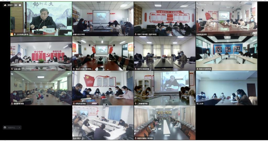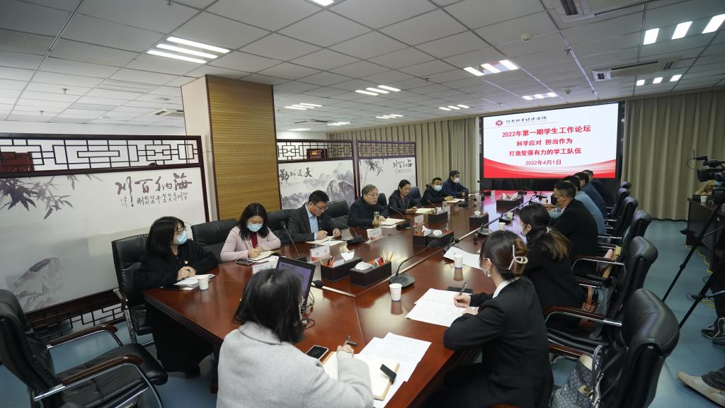 4月1日上午,学校召开“科学应对 担当作为 打造坚强有力的学工队伍”2022年第一期学生工作论坛。校党委书记穆瑞杰,副校长杨志清在龙子湖校区841会议室主会场出席会议,学生工作各职能部门负责人、发言代表及13个学院(书院)学生工作队伍分别在主会场和英才校区、北林校区分会场参加会议。会议由校党委学工部部长郝景昊主持。