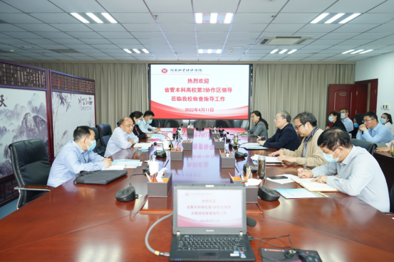4月11日,省管本科高校第3协作区检查组组长、河南农业大学纪委书记、监察专员游舸一行4人来我校检查指导疫情防控工作。检查汇报会在我校龙子湖校区图书馆841会议室召开,校党委书记穆瑞杰,副校长张伟、杨志清、杨宝进及相关部门负责人参加会议。