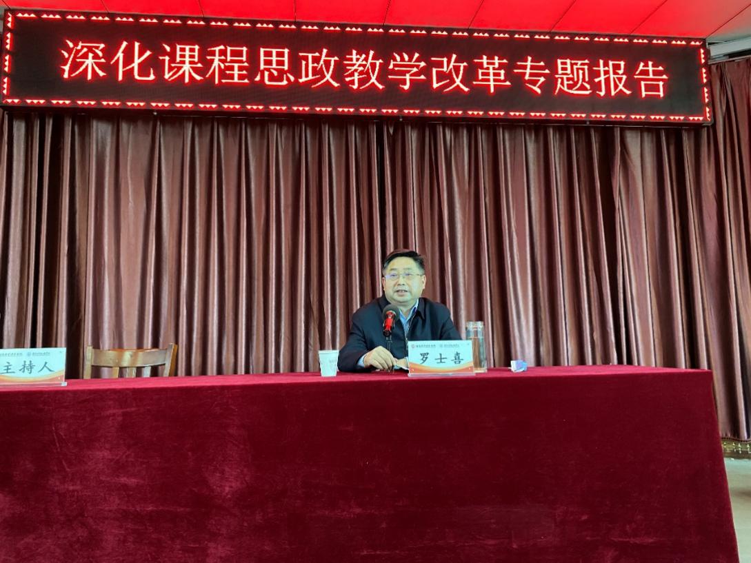 报告会上,罗士喜与现场教师就课程思政教学中存在的问题进行交流研讨。