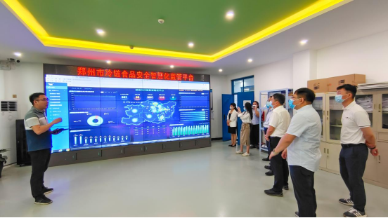 河南省物流与采购联合会副会长郅英武、郑州市市场监管局副局长朱忠锋、郑州市市场监管局食品流通安全监督管理处负责人陆勇、河南省物流与采购联合会冷链行业分会副会长夏红伟、河南省物流与采购联合会冷链行业分会秘书长郭鹏、郑州市冷链食品安全智慧化监管平台总工程师徐超凡参加了调研。(肖丽平 文/图)