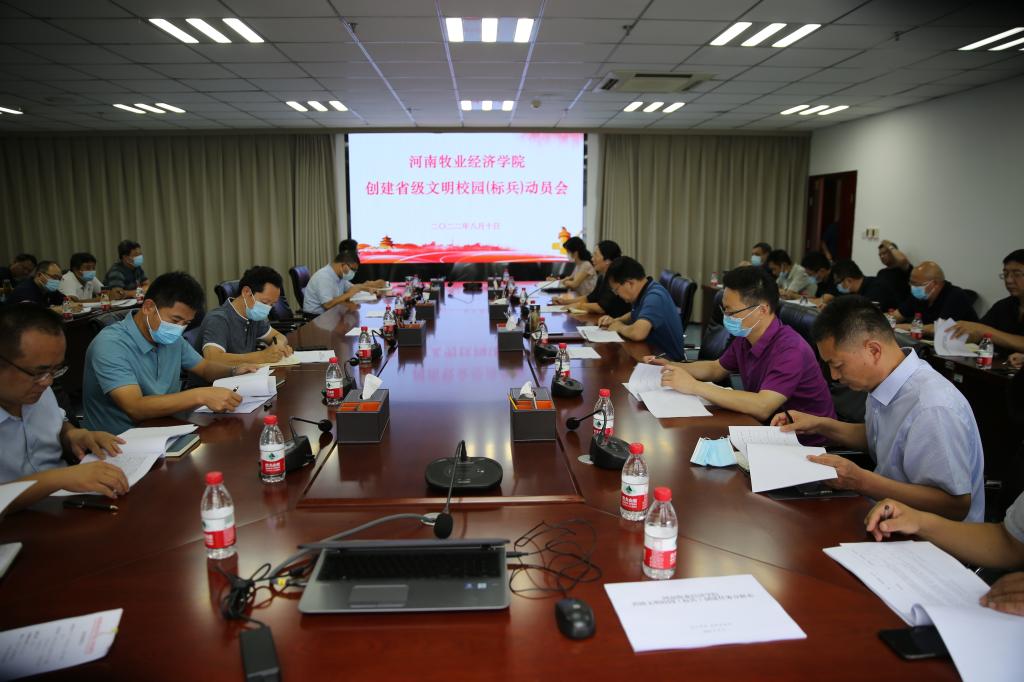 8月10日下午,学校在图书馆841会议室召开2022年度创建省级文明校园标兵动员会。校党委副书记李俊杰到会作动员部署,各职能部门负责人、各学院(书院)党组织书记参加会议。会议由校党委委员、宣传部部长吴静主持。