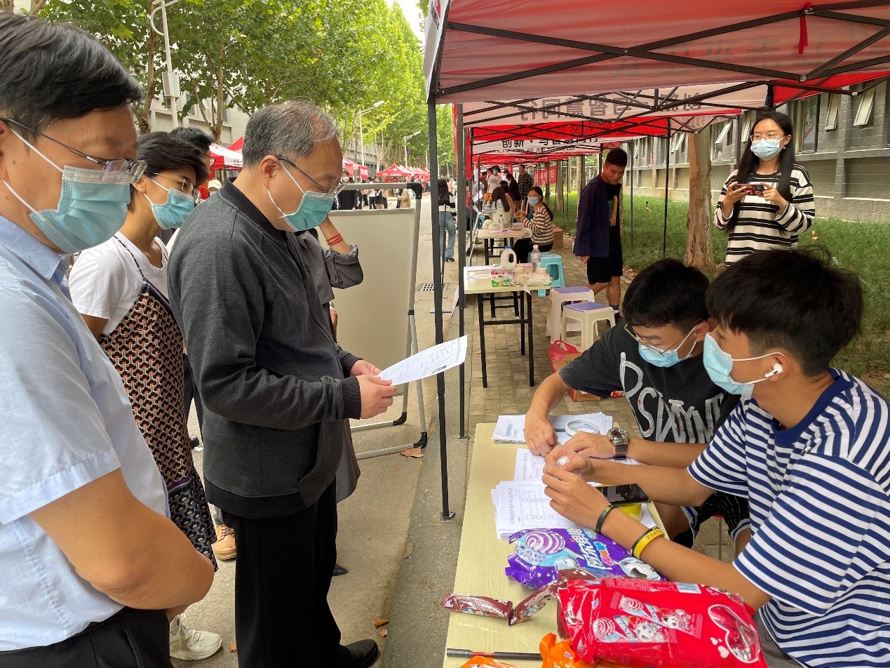 为丰富常态化疫情防控形势下校园文化生活,充分发挥学生社团凝聚青年学生、繁荣校园文化的积极作用,培养和壮大我校学生社团队伍,营造良好的校园文化氛围,10月2日至3日,校团委组织开展了“喜迎党的二十大 青春展风采”社团招新暨风采展活动。校党委书记穆瑞杰、副书记李俊杰亲临现场指导工作,相关部门负责人及各社团指导老师参加活动。