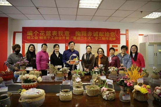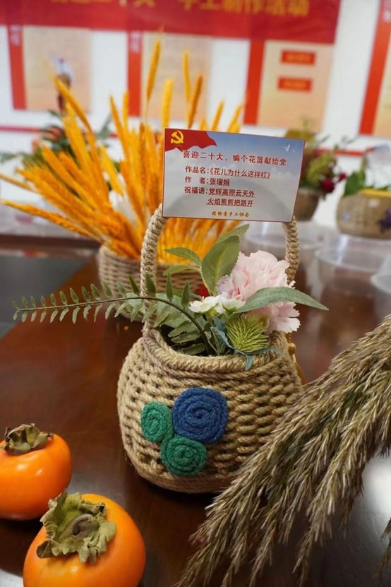 为迎接党的二十大胜利召开,9月29日至10月9日,校工会联合教职工畅意手工协会举办了“喜迎党的二十大 编个花篮献给党”主题手工制作活动。校党委副书记李俊杰亲临活动现场评鉴花篮手工艺作品,党委宣传部、校工会负责人和畅意手工协会会员代表30余人参加活动。