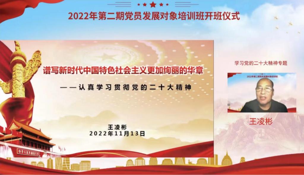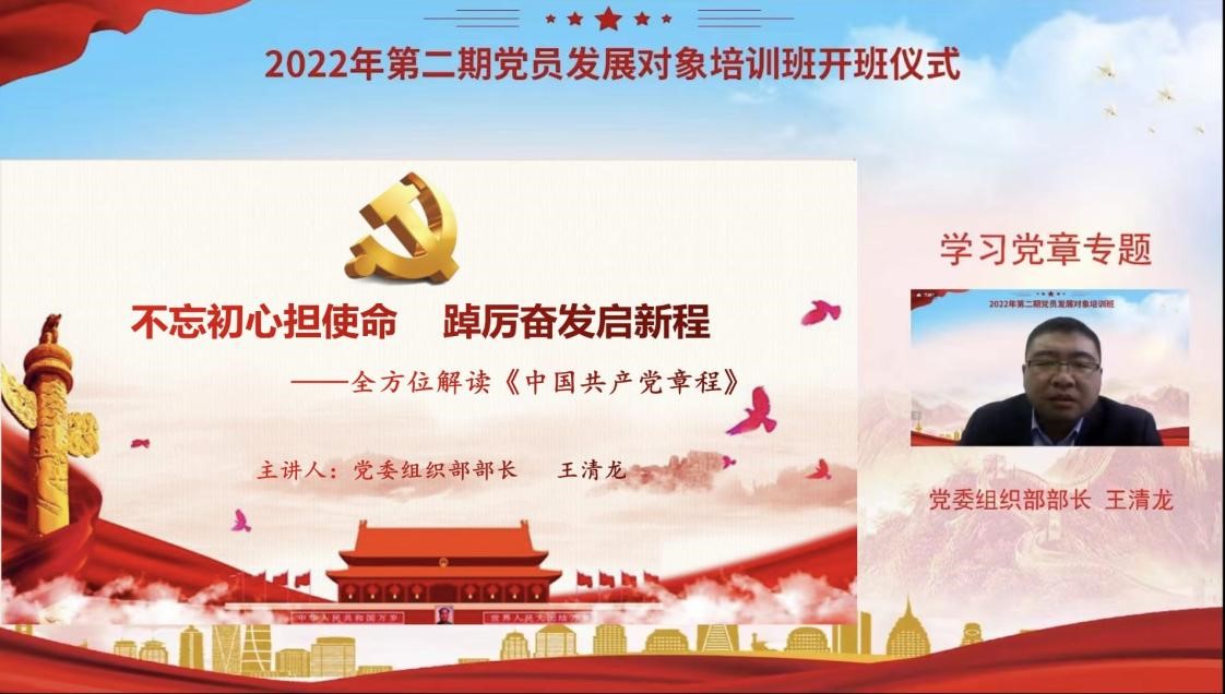 为深入贯彻习近平新时代中国特色社会主义思想,学习宣传党的二十大精神,提升我校党员发展对象的思想政治素质,保证党员发展质量,结合当前疫情防控形势,11月13日上午,我校以网络直播的形式举办了2022年第二期党员发展对象培训班开班仪式。校党委副书记、工会主席李波出席开班仪式,党委组织部部长王清龙参加开班仪式,各基层党组织的449名师生党员发展对象参与了培训。开班仪式由党委组织部副部长仝颖凯主持。