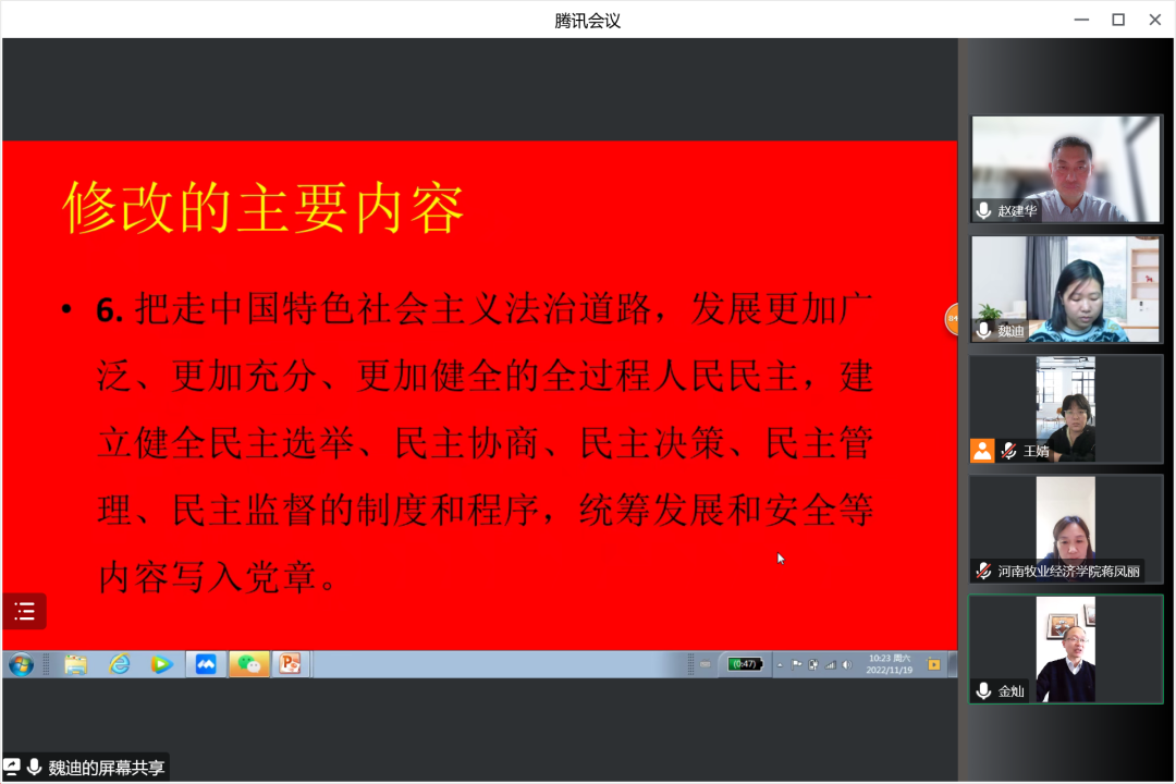 党委组织部党支部书记王清龙在主题党日活动中重点领学了党的二十大报告,带领大家学习习近平总书记重要文章《坚持和发展中国特色社会主义要一以贯之》等内容。大学生心理健康教育中心党支部书记张颖领学了党的二十大报告中关于教育科技人才、文化自信、青年工作等方面的重要论述。教师发展中心党支部书记王永芬带领大家认真学习了党的二十大报告的相关核心要义,结合教师发展中心工作实际,畅谈了心得体会与要求。国际交流与合作处党支部成员围绕学习党的二十大精神发言交流,与会党员教师结合个人学习思考和工作实际,谈认识、谈理解、谈感悟。