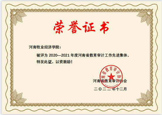 岁末将至,喜讯再传。近日,河南省教育审计协会发布《关于表彰2020-2021年度河南省教育审计工作先进集体和先进工作者的决定》(豫教审协[2022]4号),我校被评为“河南省教育审计工作先进集体”。