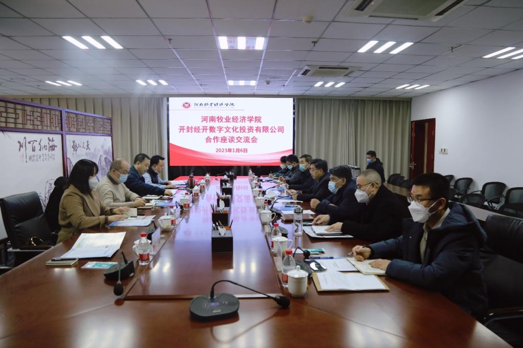 1月6日上午,在龙子湖校区图书馆841会议室,校长罗士喜与开封经开数字文化投资有限公司总经理郭一霖一行开展座谈交流,双方就共建艺术金融产业学院展开商讨并达成了合作意向。会议由副校长杨国宇主持。