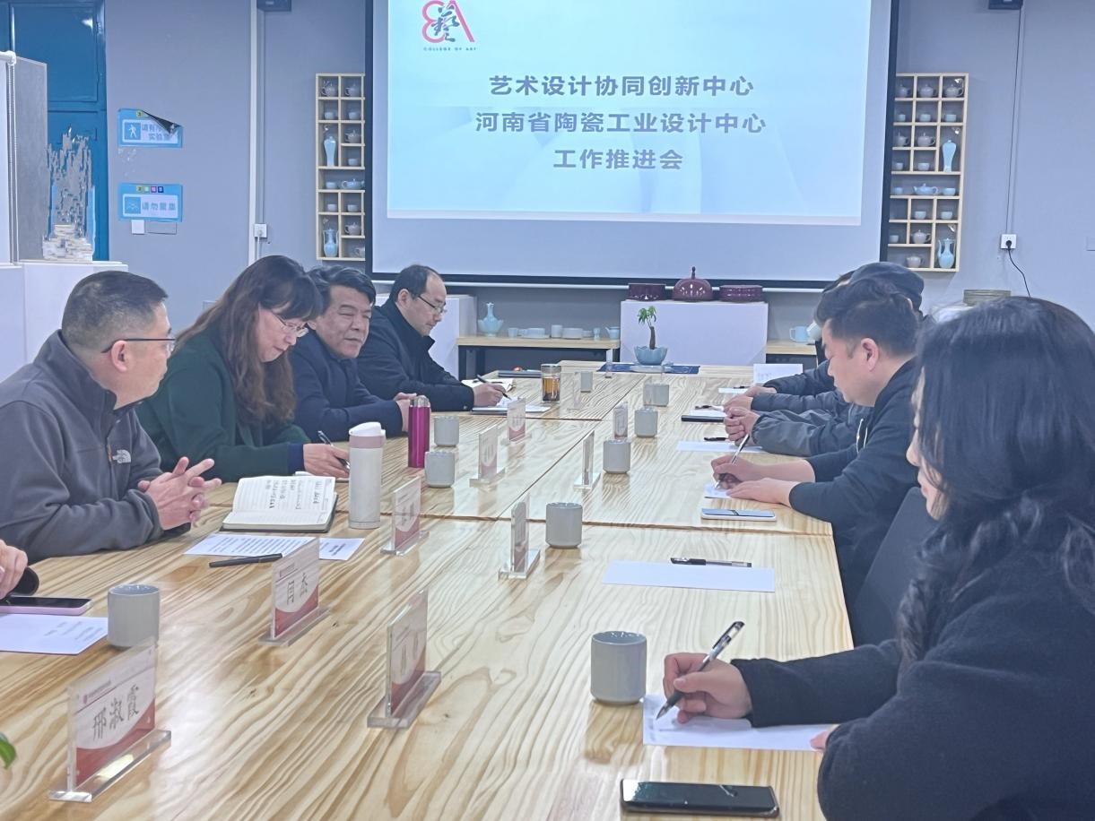 近日,艺术学院在龙子湖校区尚严楼召开艺术设计协同创新中心及河南省陶瓷工业设计中心工作推进会。副校长杨国宇出席会议。河南省陈设艺术协会、宝丰徽汝汝窑文化发展有限公司、郑州九和包装设计有限公司等协会、企业领导受邀参会。我校科学技术处、艺术学院领导班子成员等同志参加推进会。会议由艺术学院党委书记王国辉主持。