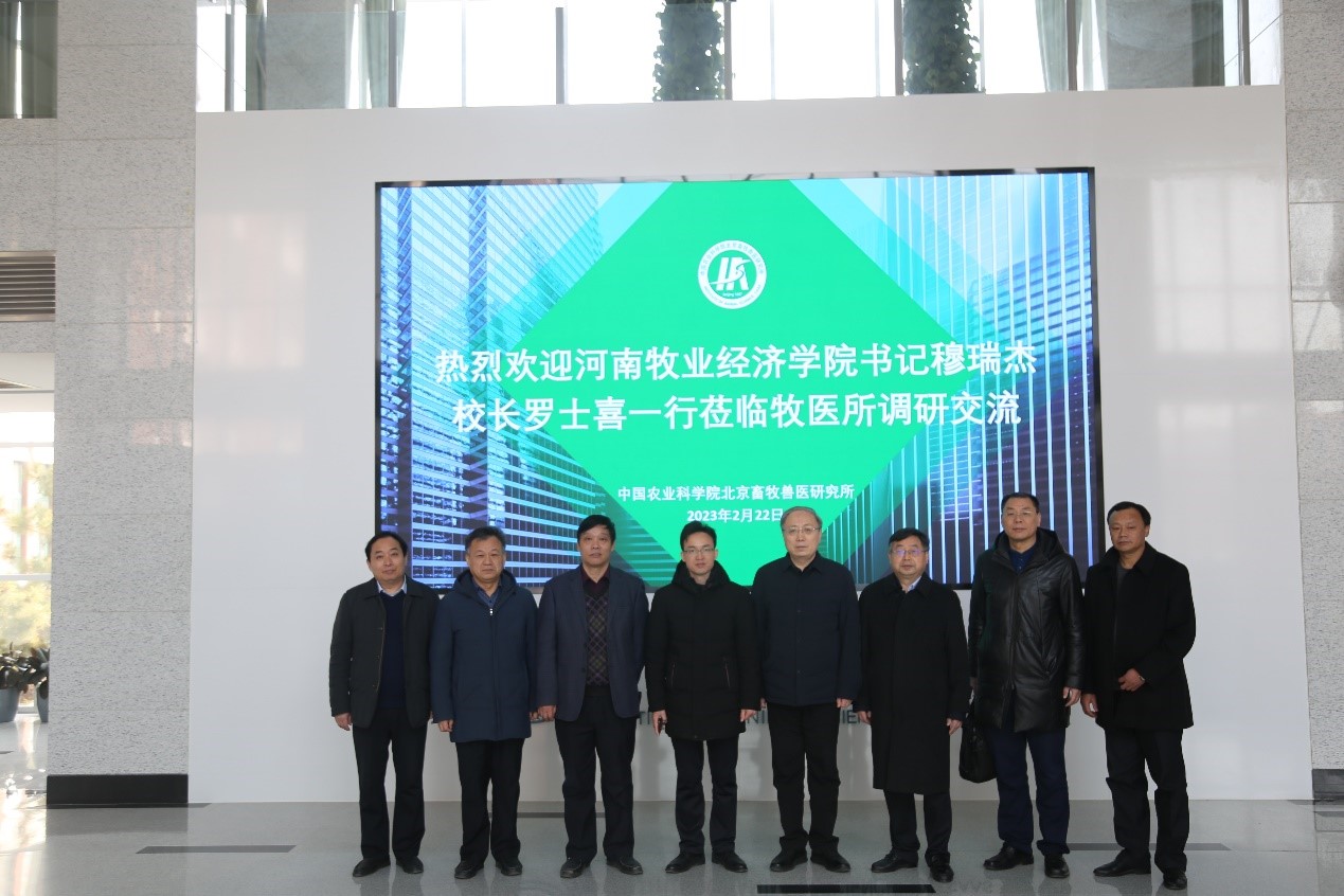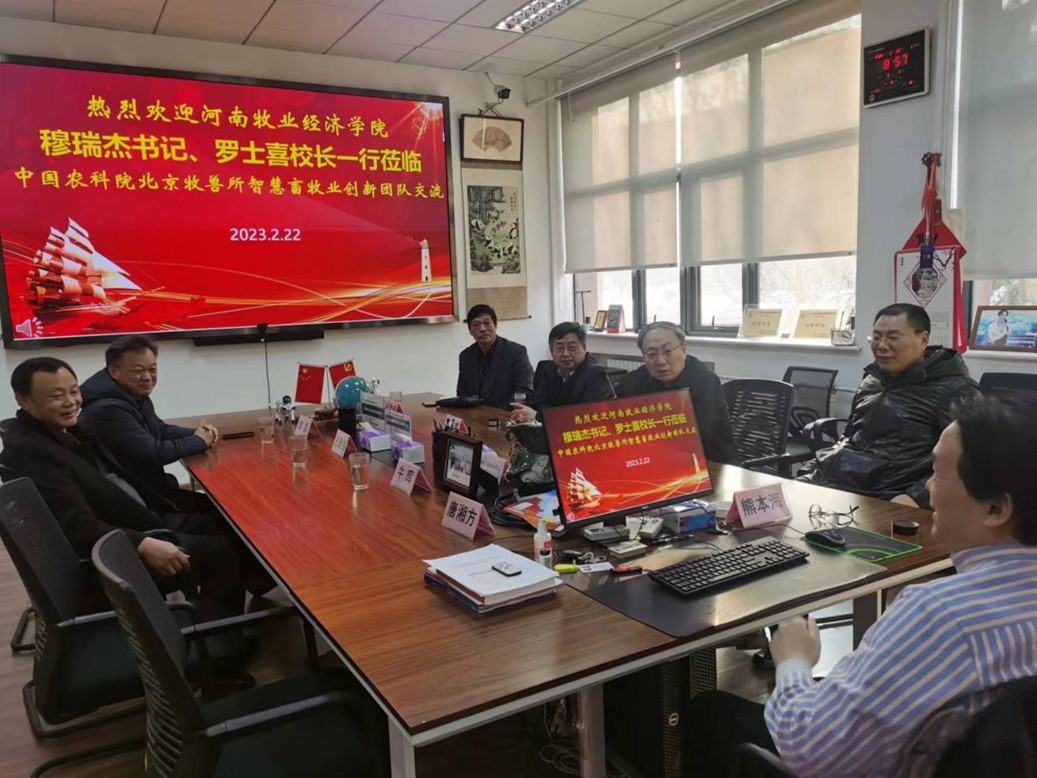 随后,穆瑞杰、罗士喜一行考察了中国农业科学院北京畜牧兽医研究所和农产品加工研究所,并与研究所相关负责人开展座谈交流。座谈中,穆瑞杰强调,河南作为农业大省,需要积极培育高素质农民,夯实“三农”发展人才库。tyc8722太阳集团城以服务畜牧业全产业链为特色,以培养高技能型产业人才为重点,以牧工商一体化多学科交叉融合发展为定位,围绕畜牧产业这个全产业链,构建了动物生产类、食品工程类、商贸物流类等五大相互衔接的学科集群,通过提升科技创新能力,培养了一大批服务“三农”的高素质人才,有利助推了全省畜牧业高质量发展。罗士喜介绍了我校的发展历史、学校建设、师资力量、教学设施等基本情况,阐释了学校牧工商一体化的发展思路,并希望在智慧牧业科学与工程专业建设方面与北京畜牧兽医研究所加强合作与交流。