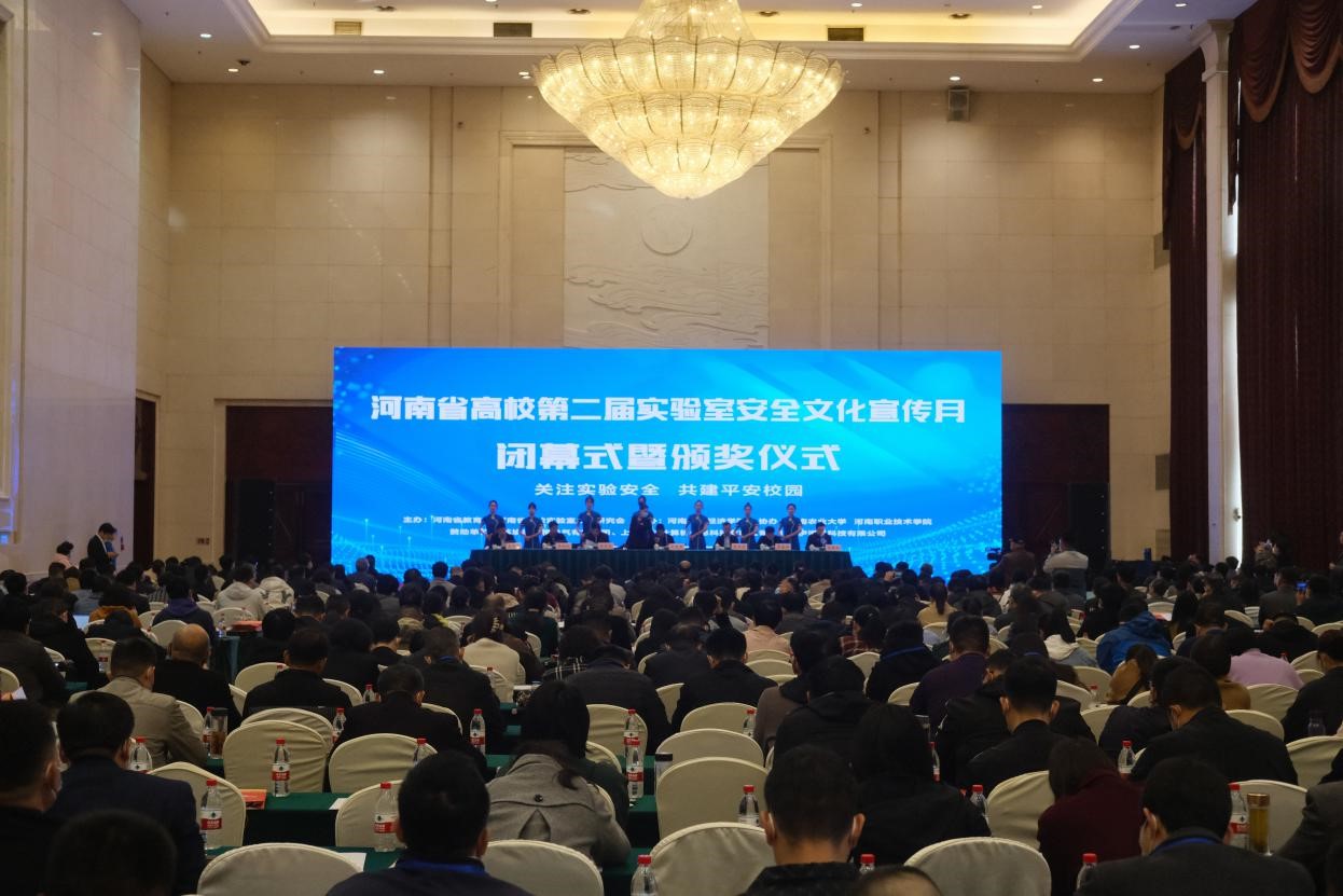 会上,杨宝进宣读了《关于表彰河南省第二届高校实验室安全文化宣传月优秀组织单位的通知》和《关于表彰河南省高校实验室安全知识大赛优秀组织奖和优秀个人的通知》,郑州大学等29所本科高校、郑州电力高等专科学校等26所高职高专学校的代表上台领奖。我校喜获“河南省第二届高校实验室安全文化宣传月优秀组织奖”和“河南省高校实验室安全知识大赛优秀组织奖”,学生获得本科组团体总分第二名的成绩,充分展示了学校实验室工作队伍良好的工作风貌和专业化水准。