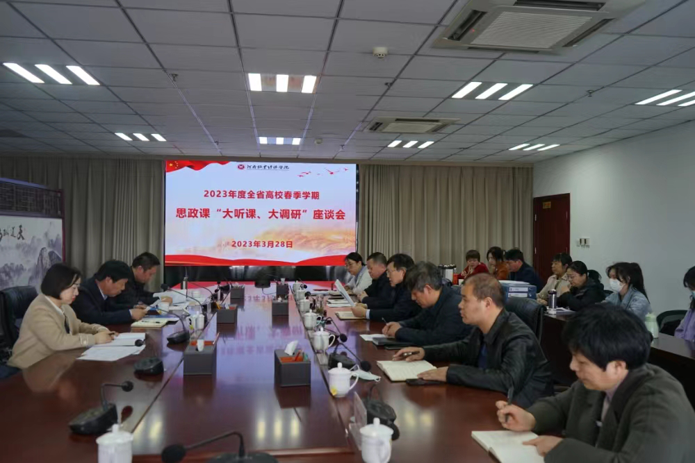 3月28日下午,河南省高校思政课“大听课”“大调研”第五调研组组长、中原科技学院党委书记邵书峰,调研组成员郑州西亚斯学院马克思主义学院教授李斌、中原科技学院马克思主义学院副院长朱媛一行三人,对我校开展思政课听课调研活动。校党委副书记李俊杰、党委宣传部副部长冯广鹏、教务处副处长夏晶晶、马克思主义学院班子成员、思政课教师和学生代表参加了座谈会。