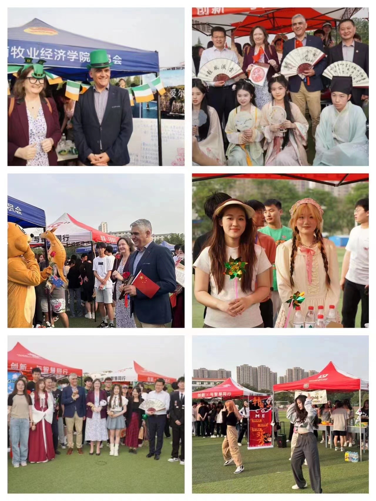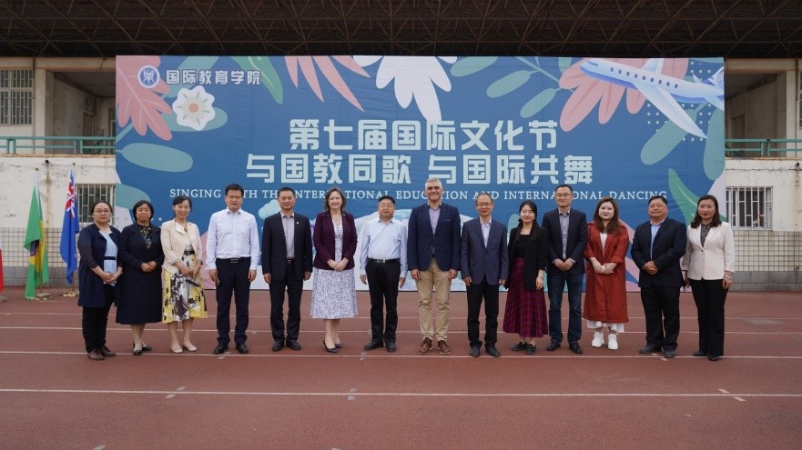 4月18日,阳光明媚,惠风和畅。由国际教育学院主办的“与国教同歌,与国际共舞”第七届国际文化节开幕式暨国际文化风情展在英才校区田径场拉开帷幕。校长罗士喜、爱尔兰东南理工大学教务长Yvonne、外事长Donal出席了开幕式,学校国际交流与合作处处长赵建华、国际教育学院院长胡晓波、卡洛理工国际学院和国际教育学院的师生代表参加了本次活动。