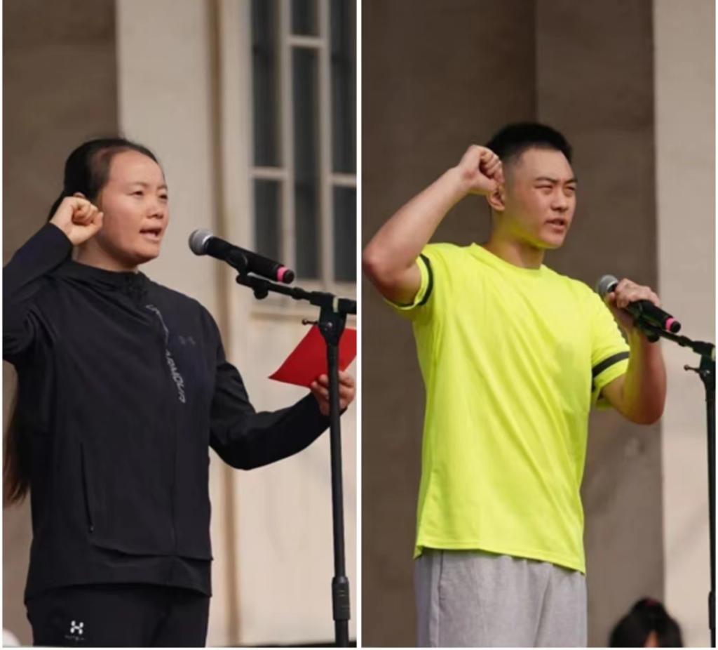 体育部教师沈艳珍、国际教育学院学生运动员秦伟泽分别代表裁判员和运动员宣誓。