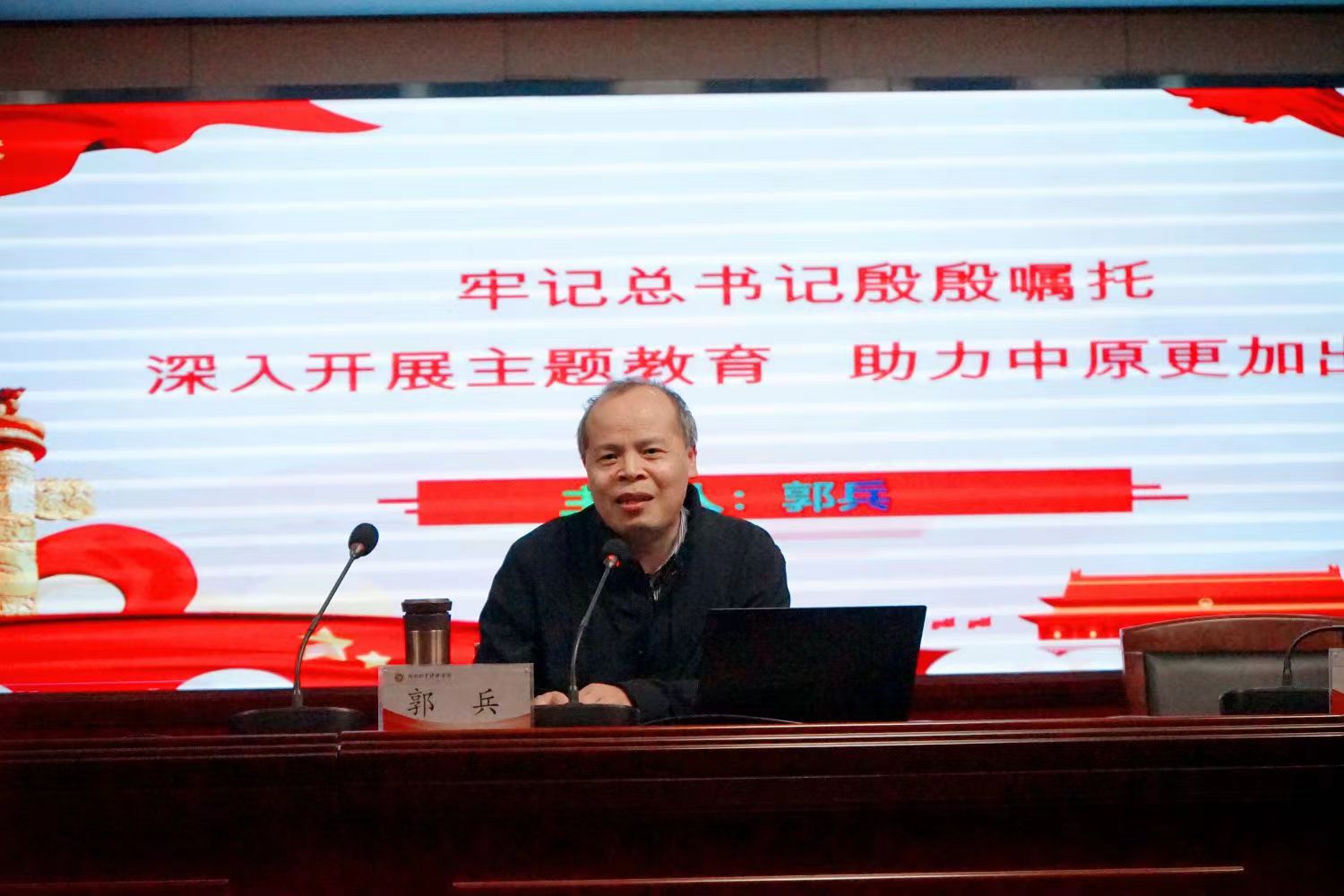 为进一步深入开展学习贯彻习近平新时代中国特色社会主义思想主题教育,根据校党委工作安排,4月26日,tyc8722太阳集团城举办学习贯彻习近平新时代中国特色社会主义思想教育读书班开班式暨首场辅导报告。学校特邀省委宣传部理论教育讲师团副团长、河南大学哲学与公共管理学院兼职教授郭兵为大家作专题报告。校党委书记穆瑞杰、副书记李俊杰、副校长张伟、姚毅出席此次报告会,全体中层干部聆听报告,会议由李俊杰主持。