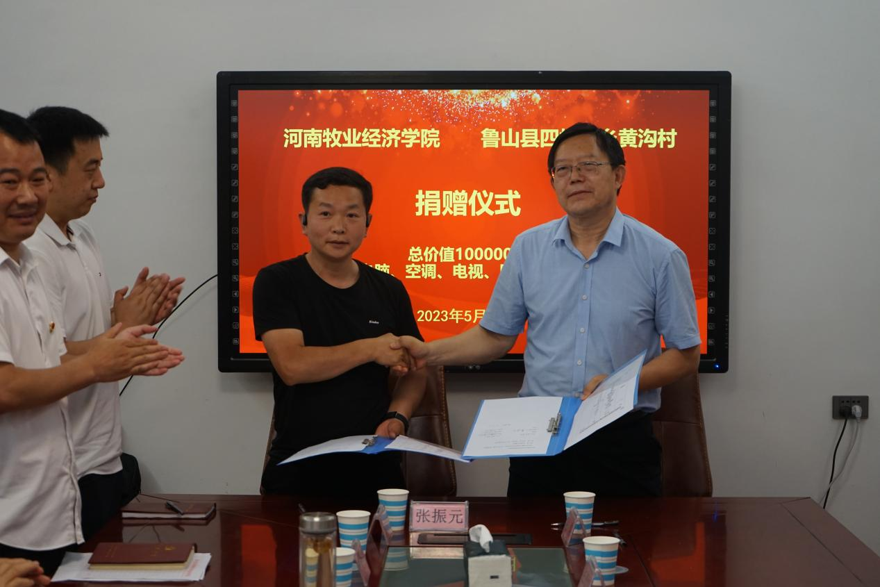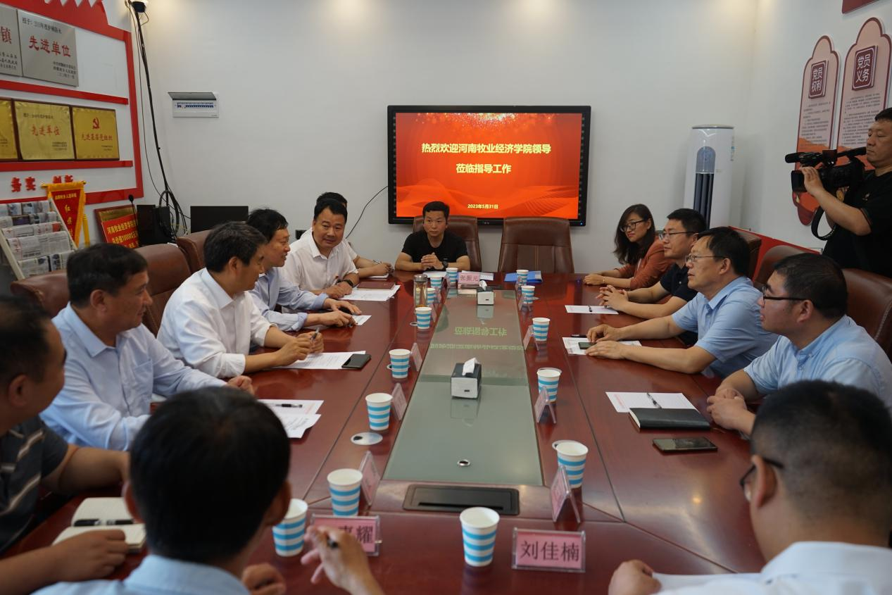 李俊杰介绍了学校基本情况,对鲁山县和四棵树乡给予第一团支部书记的关心支持表示感谢。他指出,选派驻村干部是中央推动实现共同富裕、促进乡村振兴作出的一项重大决定,是继脱贫攻坚后确保农村工作持续深化发展的重要举措。我校在农林经济管理等方面拥有雄厚的师资力量及丰厚的学术研究成果,在黄沟村设有河南省乡村振兴研究院研究基地,希望今后双方可以继续加强沟通交流,在推进乡村振兴伟大战略进程中寻找契合点,不断完善校地合作机制。