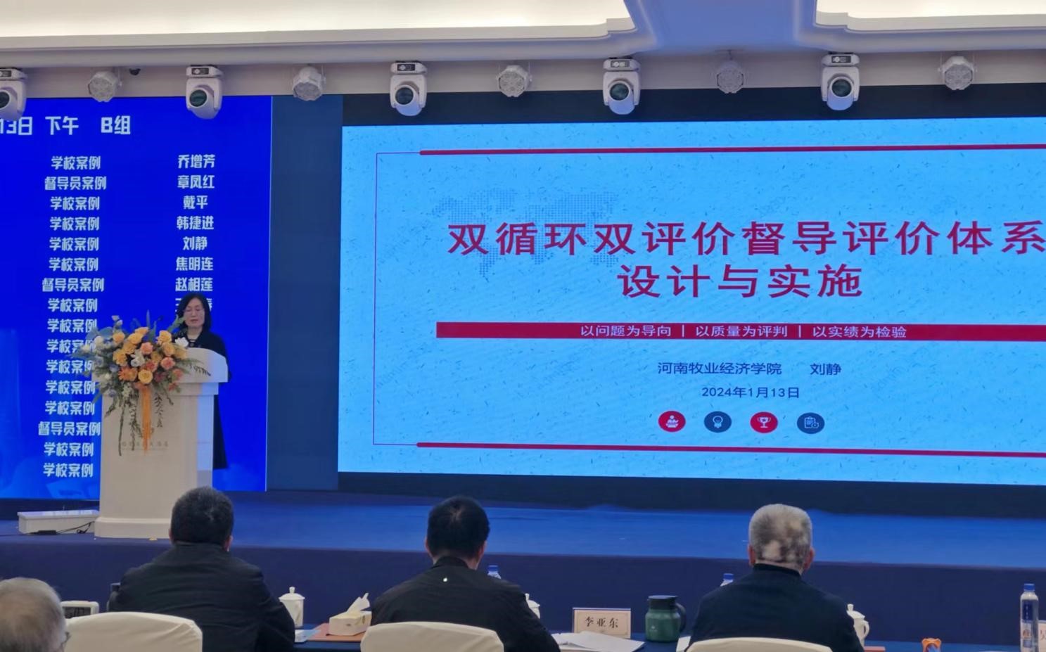 我校选报的案例《双循环双评价督导评价体系设计与实施》入选教学督导工作优秀案例,刘静在会上以此为题做了专题报告。报告从教育教学督导工作存在问题分析和思考为切入点,对教学质量监控体系目标的设定、体系的完善、校院两级队伍的改进、评价改革实施和成效等方面做了系统介绍。评审专家团对我校的督导工作给予了高度评价,认为我校的“双评价”、“双循环”、“双闭环”管理机制有鲜明的特色,具有很好的推广价值。同时,也对我校督导工作队伍建设、督导工作职能的拓展等方面提出了中肯建议。
