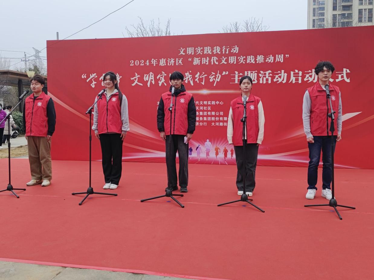 2024年3月5日正值第61个“学雷锋纪念日”,当天上午,由惠济区新时代文明实践中心主办、大河路街道天河社区新时代文明实践站承办的2024年惠济区“学雷锋 文明实践我行动”主题活动启动仪式在天河社区文体广场举行。作为河南省第1229例和河南省第1331例造血干细胞捐献者,我校物流与电商学院学生荆乐天、王叶文受邀参加活动。