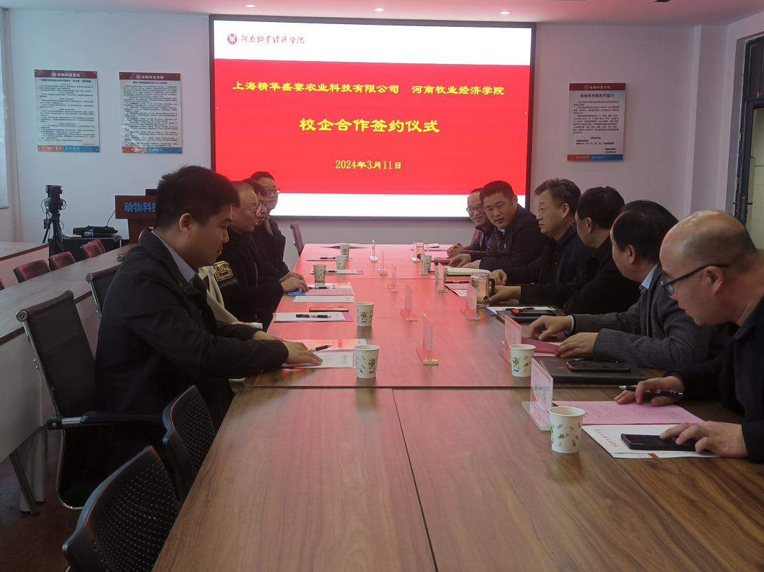 3月11日,动物科技学院携手上海精华盛宴农业科技有限公司在生工楼B301会议室举行校企合作签约仪式。我校副校长、动物科技学院院长席磊、动物科技学院党委书记王建伟及班子成员、相关专业负责人,上海精华盛宴董事长杜汉民、总经理施立新等公司人员出席此次签约仪式,会议由副院长牛晖主持。
